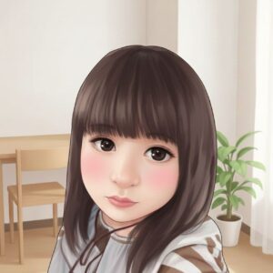 茶色のセミロング。大きな瞳。幼さを残した顔立ち。