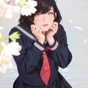 彼女はふと微笑むと、静かに手を自身の襟元へ持っていった。
